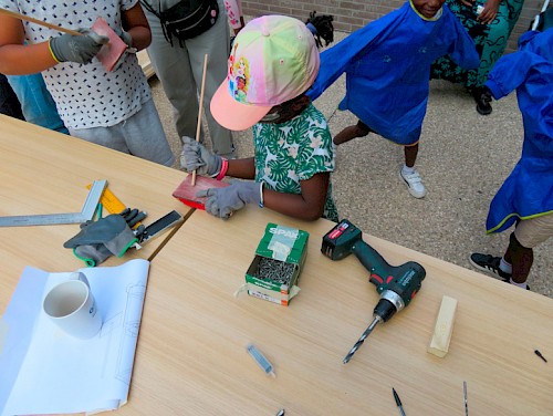 Public : 6 participants par ateliers de conception (adultes) et 20 participant·es par ateliers de chantiers (enfants, jeunes, adultes et senior·es).