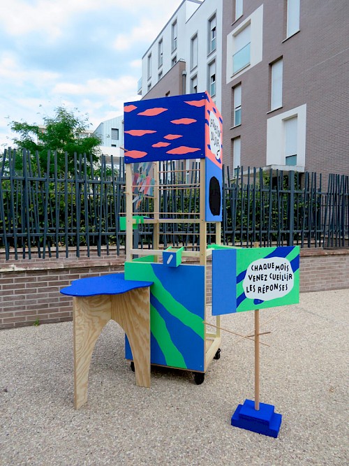Les quatre faces du dispositif offrent la possibilité aux petits et grands de poser une question, puis d’y afficher des réponses. Ces réponses sont ensuite récoltées directement sur la structure, et apportent des idées et des commentaires sur les changements en cours dans le quartier, ou encore des propositions de projets à construire ensemble.