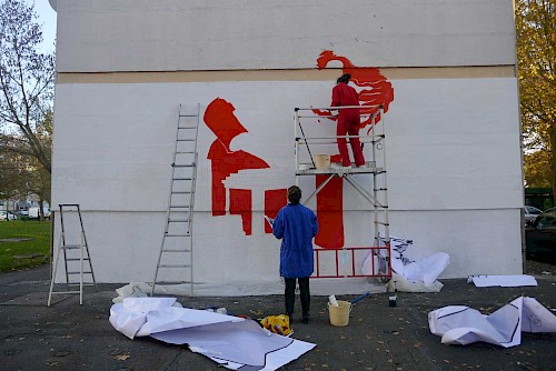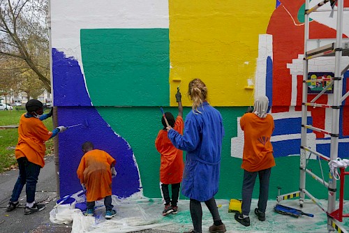 Temporalité et nombres d’ateliers : 2 ateliers de deux heures conception + 1 semaine de chantier participatif (fresque murale)