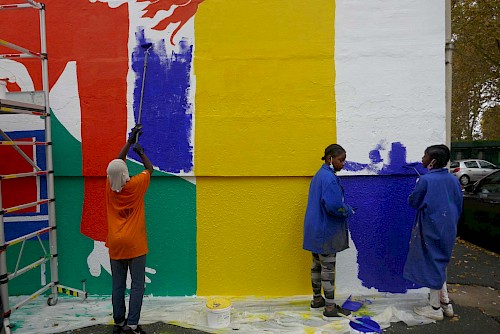 Temporalité et nombres d’ateliers : 2 ateliers de deux heures conception + 1 semaine de chantier participatif (fresque murale)