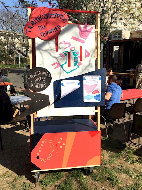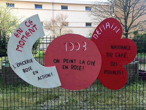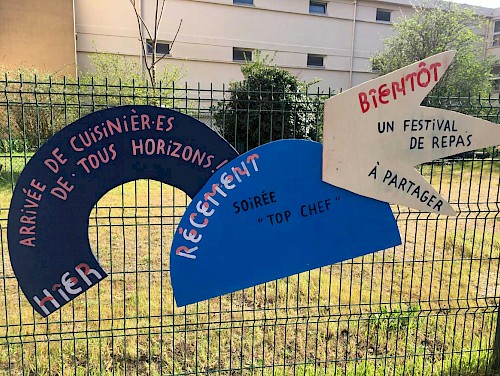 Sous l’invitation des étudiant·es du master PCEP (Projet Culturel dans l’Espace Public), notre collectif est venu pendant une semaine participer à la fabrication de plusieurs panneaux de signalétique pour habiller la cité Rose à Nanterre.
