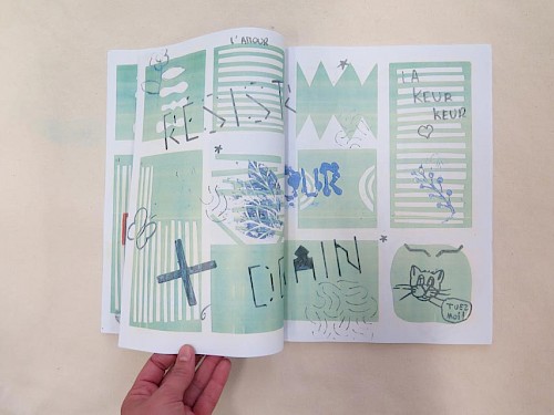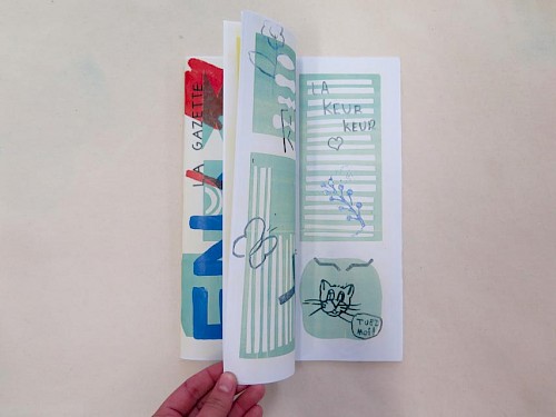 Celles-ci ont ensuite été disposées de manière à créer une imposition en livret, afin de pouvoir laisser un objet relié en consultation et de permettre à chacun de repartir avec sa trace.