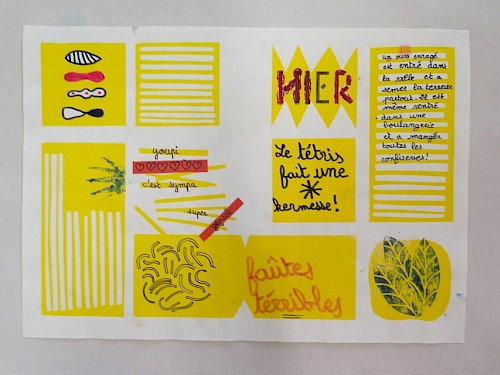 À partir d’outils graphiques générés par le collectif, nous avons proposé aux participants de créer une Gazette Collective en l’espace d’un après-midi.