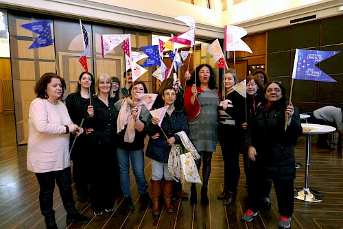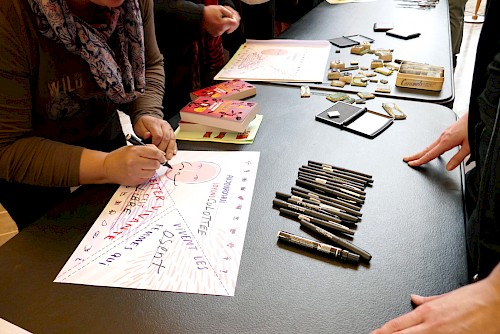 Atelier de création d’un drapeau-slogan.