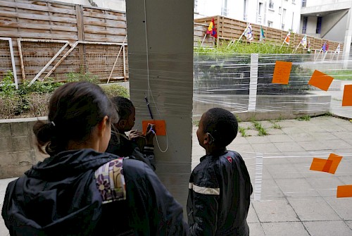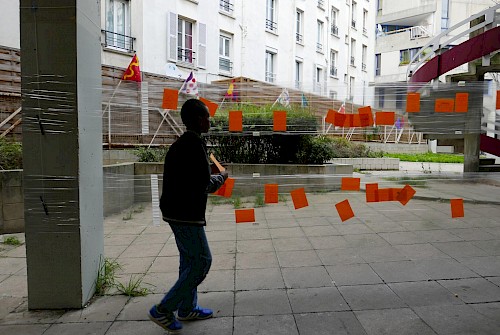 À l’occasion des Journées des portes ouvertes des Ateliers d’artistes de 2015, Le collectif Ne Rougissez Pas ! a investi l’espace public de la cité des Longs Sillons.