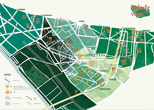 Face à la nécessité d’identifier spatialement les jardins et points de végétalisation dans le 12e mais également de définir une identité graphique claire, nous avons mené une recherche graphique sur le territoire afin d’identifier visuellement les différents « points verts » clés par et pour les habitants. Nous avons pris en charge la création d’une identité graphique et d’une cartographie sensible du territoire afin d’y identifier les éléments nouveaux et attractifs.