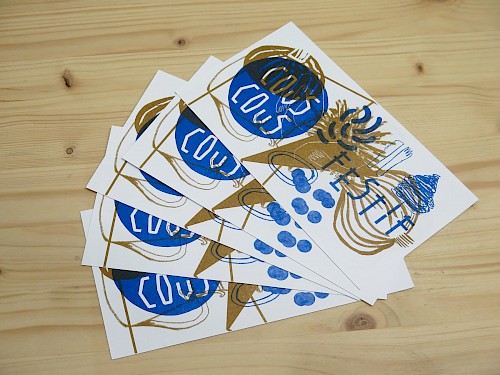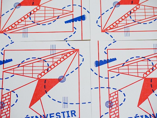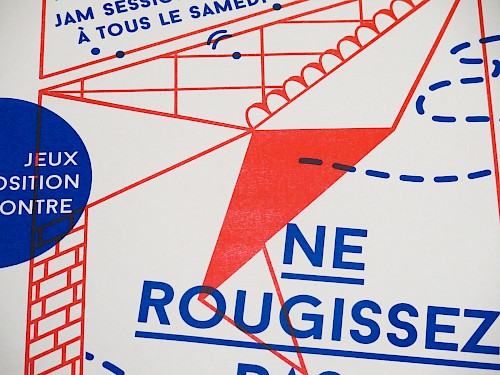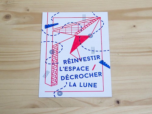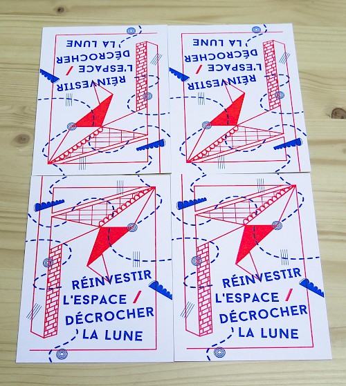 Impression risographie chez Après Midi Lab sur papier Munchen/ Environ : 300 affiches A3 et 400 cartons