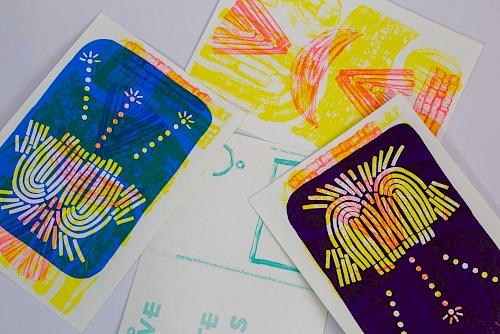 Dans le cadre de différents événements portés par des municipalités dans l’espace public, notre collectif est intervenu pour imprimer en sérigraphie en direct des objets papiers.