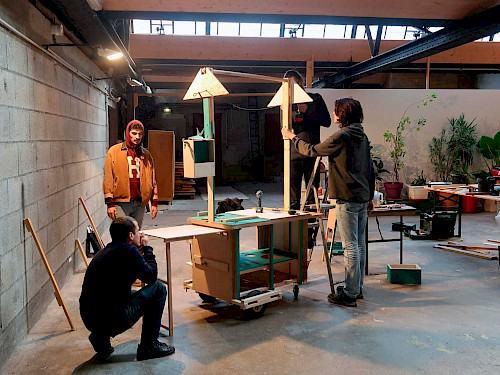 La lucarne mobile est un dispositif mobile en bois de récupération :