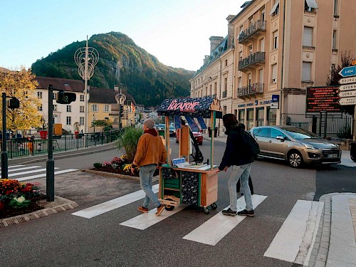 Dans le cadre d’une résidence artistique d’une semaine menée à Saint Claude, nous avons été invité·es par la Fraternelle pour concevoir et fabriquer un dispositif de récoltes interactif urbain pour la réalisation du journal de quartier la Lucarne. Ce dispositif permettait de déambuler dans l’espace public et d’aller à la rencontre des habitant·es afin de pouvoir récolter des histoires qui feront parties de « la Lucarne », journal de quartier à Saint-Claude.