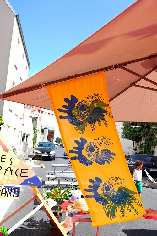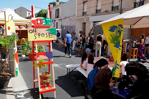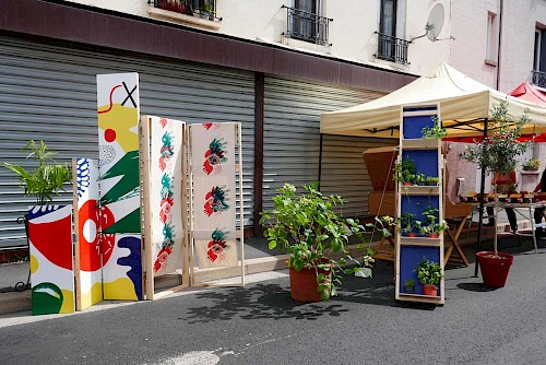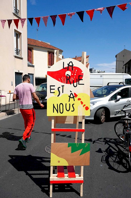 “La rue est un nous” un projet coopératif initié par le théâtre El Duende en partenariat avec Les amis de la Cour Cyclette, la librairie Envie de lire, le collectif NRP! et les habitantes et habitants du quartier du Petit Ivry. Ce projet a permis de réinvestir et de réinventer une rue, pendant l’été 2020, autour des valeurs écologiques et de solidarité.