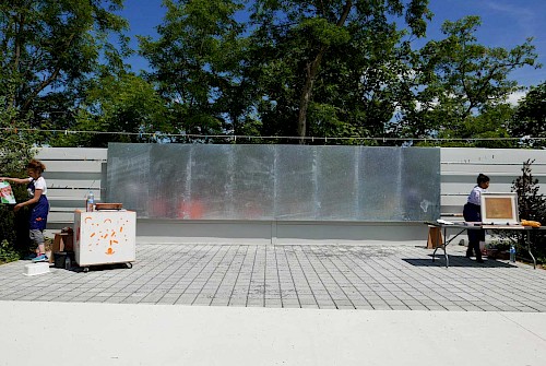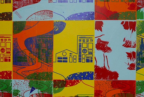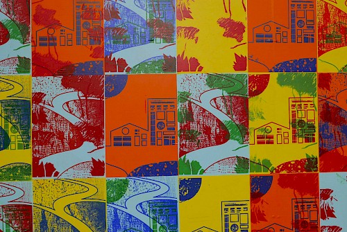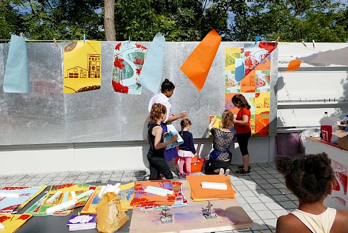 Horizons Urbains est un projet de création participative en sérigraphie d’un espace mural municipal avec les habitants du quartier du Chaperon Vert lors de la fête du quartier, et avec les usagers du Centre Culturel Municipal lors de l’inauguration du festival.
