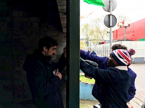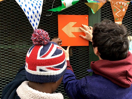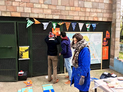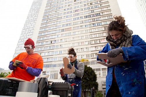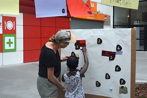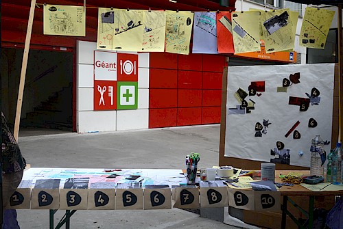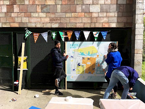 Ce projet de signalétique a démarré en juillet 2017 avec une série de joyeux ateliers dans l’espace public à Villa d’Este, Paris 13. À partir de photographies liées à la cité, nous avons fabriqué des pictogrammes représentant les tours et certains points remarquables, afin de constituer une cartographie représentatif de l’ensemble urbain ainsi que des panneaux directionnels qui l’accompagnent. Ce Protocole d’Interprétation du Territoire en Agglomération Urbaine est l’aboutissement d’un chantier participatif avec des habitants du quartier et le soutien de l’EDL, et de la ville de Paris. Merci au centre social 13 pour Tous pour leur aide précieuse et aux syndicats de copropriétés pour leur autorisation à intervenir sur le territoire.