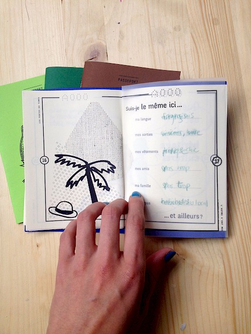 Nous avons proposé à chaque participant de s’interroger sur les différentes composantes de son identité personnelle en s’appuyant sur les collections du Musée de l’Histoire de l’Immigration. Ainsi nous avons articulé visites commentées et phases de création et de réflexion pour permettre à chacun de se (RE)définir en tant qu’individu dans le collectif, à travers la construction de son passeport personnel.