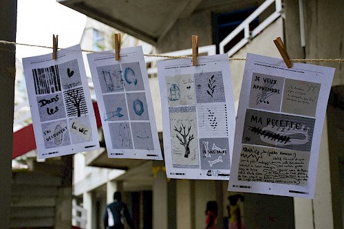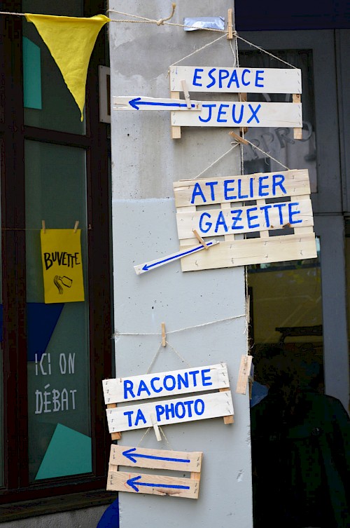 Nous avons apporté quelques jeux pour petits et grands, ainsi qu'un atelier de gazette, mis un peu de musique et quelques guirlandes lumineuses, et invité tout le monde à apporter une petite contribution pour alimenter le buffet.