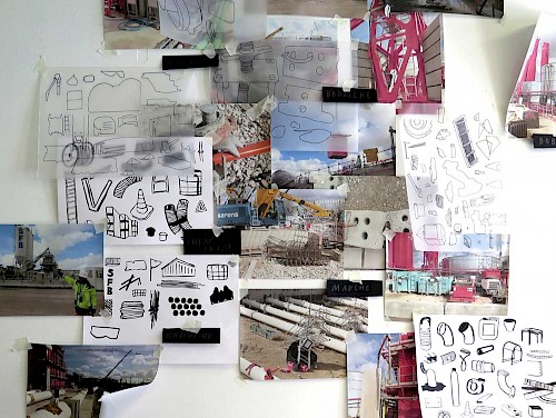 Durant les 8 mois d’interventions, et tout en proposant des formes d’ateliers différentes d’action en action, nous avons axé sur trois temps principaux : celui de la recherche croisant Histoire et imaginaire, celui de la stimulation créative à partir d’un relevé sensoriel, enfin celui de l’invention d’un mode de communication propre au chantier et à ses alentours.