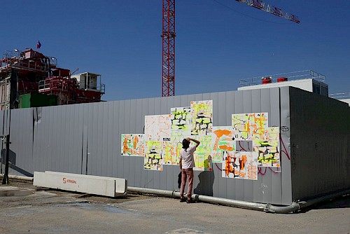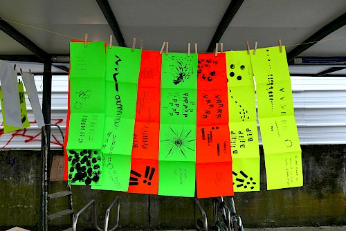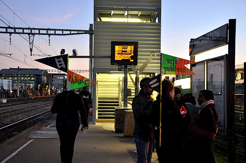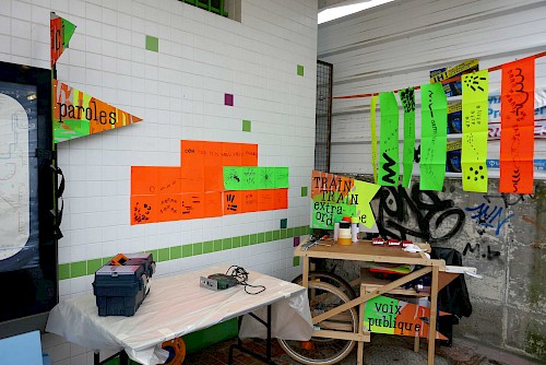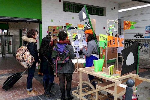 Le collectif Ne Rougissez Pas ! a proposé aux passants ponctuels ou aux usagers habitués de la gare et ses alentours de répondre à des questions absurdes, participer à des jeux, lancer des mots, des phrases, crier bas, chuchoter fort .Ils ont deviné, inventé et imaginé les bruits et les paroles du chantier des Ardoines.