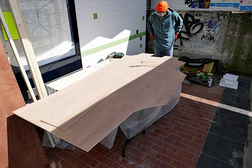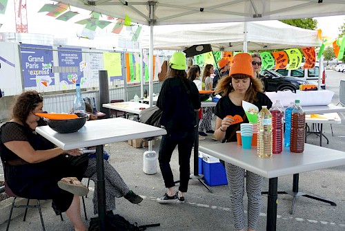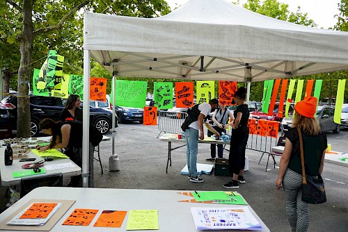 chantier participatif, micro-trottoir, installation signalétique, impression sérigraphie