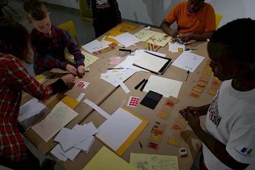 Par le biais d’outils créés par notre collectif, nous avons donc voulu développer un processus ludique de création, valorisé par le résultat final d’exposition, afin de mettre en exergue au travers du Mix Cité les représentations personnelles de ces réflexions communes.