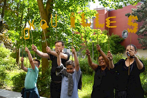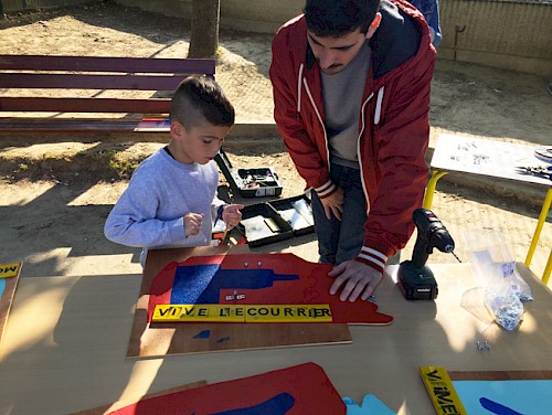 Avec la collaboration des élèves et professeurs des écoles élémentaires Deloges (CE2) et Etienne Tailhan (CP/CE1), de l'école maternelle Dr Morère, de l'Accueil de Loisir Henri Wallon, du Centre Social APMV, et de la Maison de Quartier Gérard Philippe.