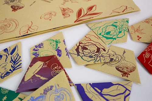 Ces petits sachets, imprimés à la main en sérigraphie, ont pour vocation d’accueillir les semences anciennes/paysannes partagées par les bénévoles du collectif et les usagers de la bibliothèque. Chaque groupe d’étudiant·es a développé un univers autour du jardin et de son imaginaire.