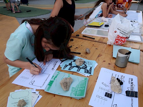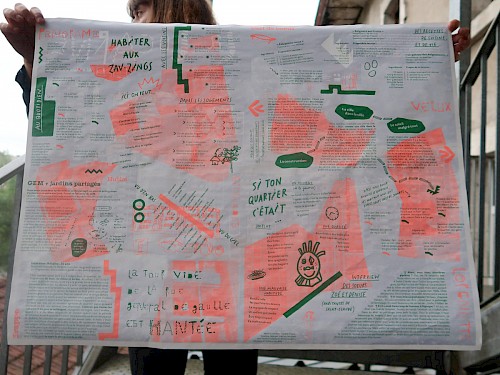 Cette création graphique met en images et en mots des bribes de témoignages, récits de vie, recettes, histoires et dessins. Ce journal est destiné à être lu, partagé et distribué chez les ami(e)s, voisin(e)s, commerçant(e)s et partout dans la ville.