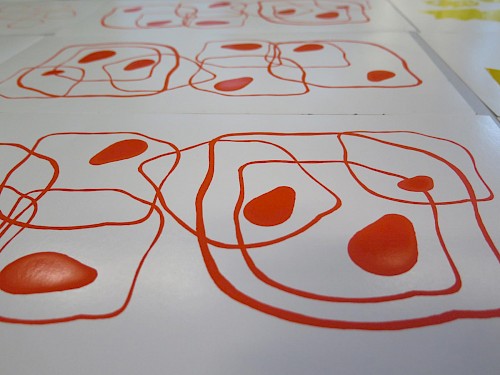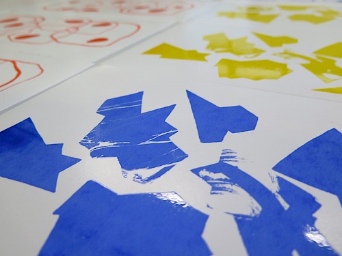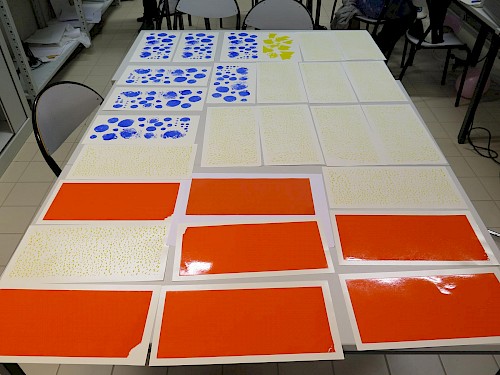 Ils ont conçu leurs motifs à l’aide d’outils graphiques mis à disposition par le collectif (tampons, peinture, encre, éléments naturels récoltés,...).