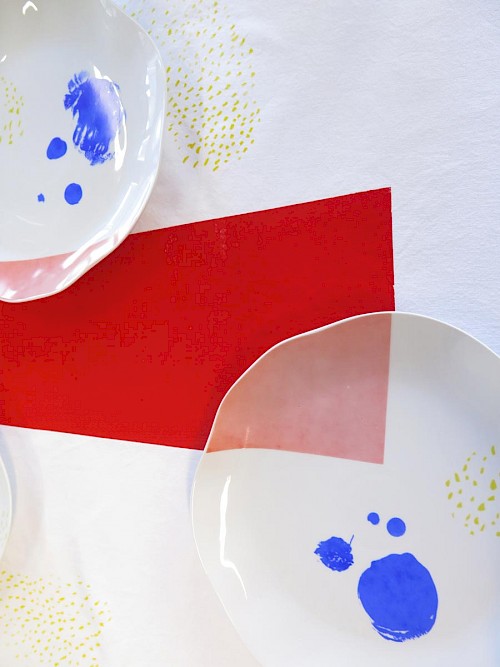 La mise en commun de ces motifs a servi de base pour l’impression sérigraphique sur le service vaisselle et la mise en situation.
