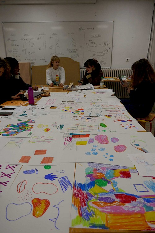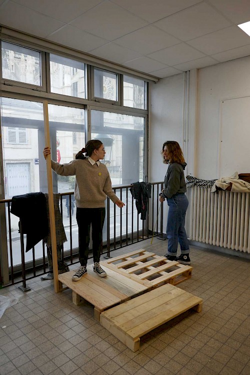 Les étudiant.es ont apporté des ponctuations, des indices, des histoires dans l’école, avec comme intention de voir, de sentir, de s’arrêter ; pour vivre une autre expérience de ces passages.