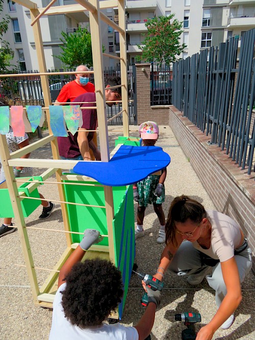 Public : 6 participants par ateliers de conception (adultes) et 20 participant·es par ateliers de chantiers (enfants, jeunes, adultes et senior·es).