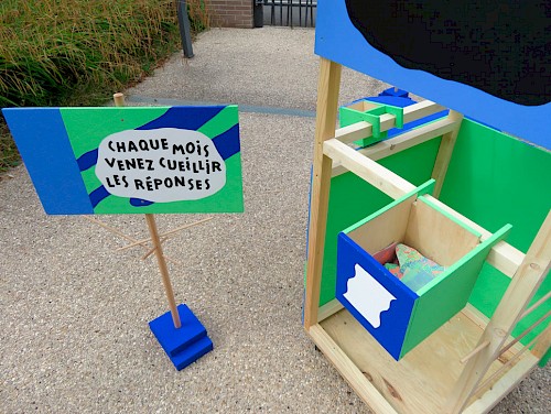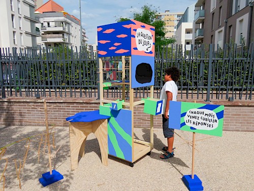Les quatre faces du dispositif offrent la possibilité aux petits et grands de poser une question, puis d’y afficher des réponses. Ces réponses sont ensuite récoltées directement sur la structure, et apportent des idées et des commentaires sur les changements en cours dans le quartier, ou encore des propositions de projets à construire ensemble.