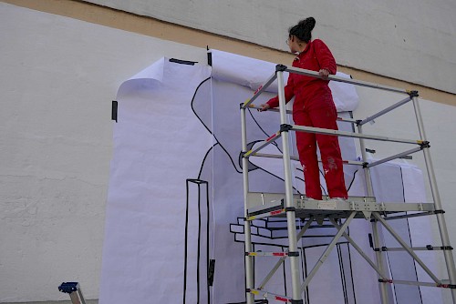 Temporalité et nombres d’ateliers : 2 ateliers de deux heures conception + 1 semaine de chantier participatif (fresque murale)