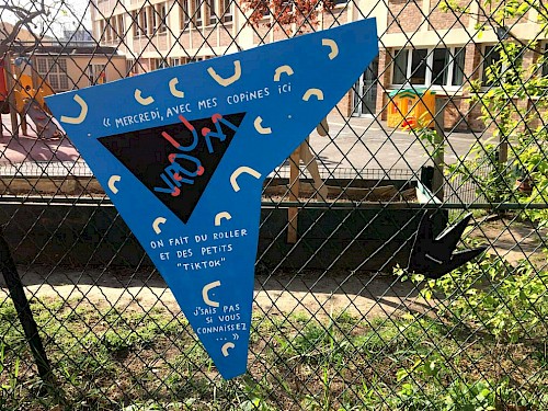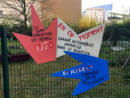 Sous l’invitation des étudiant·es du master PCEP (Projet Culturel dans l’Espace Public), notre collectif est venu pendant une semaine participer à la fabrication de plusieurs panneaux de signalétique pour habiller la cité Rose à Nanterre.
