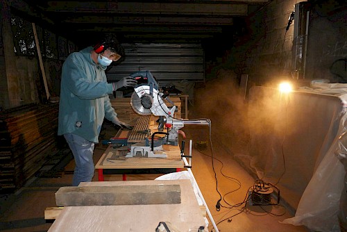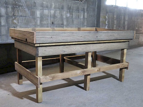 Entre octobre et novembre 2021, notre collectif est revenu au « Local qui sourit » de Villeneuve-Saint-Georges, pour réaliser en chantier participatif une vingtaine de tables de culture de plans pour la future pépinière agricole sur la dalle des Graviers au quartier Nord de Villeneuve.