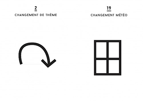 Système : des observateurs notent les anecdotes observées au moyen d'un répertoire de chiffres / une navette récolte ces notes et les amène aux traducteurs / les traducteurs recopient les notes en leur associant le symbole correspondant / les dessinateurs répercutent ces symboles, avec les échelles de taille en fonction de l'importance, sur un rouleau de bâche.