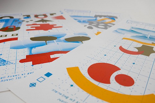 d’impression de formes graphiques sur des cartes postales et affiche a2, dont les visuels avaient été réalisés par notre collectif.