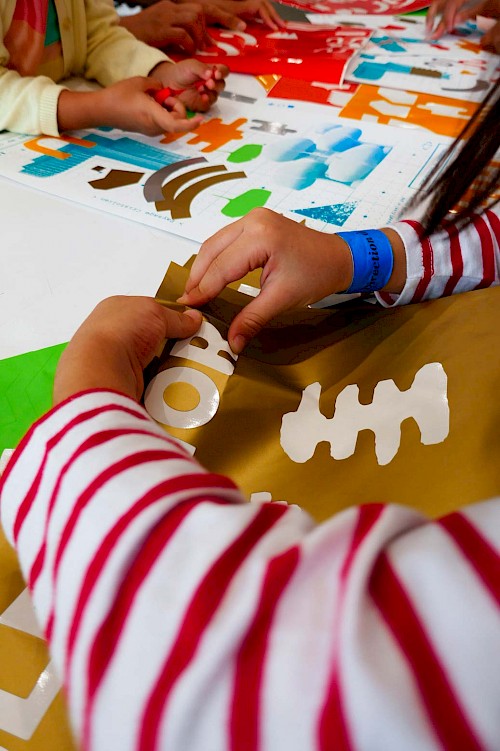 Des ateliers autour de la création de dessins et la découpe de formes extraites des architectures de Créteil dans du papier vitrail pour la fabrication de cadres « à regarder » ainsi que des ateliers
