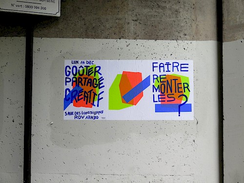 Au sein de la Cité des Longs Sillons où nous travaillons, dans un souci de continuité et de fréquence des rencontres, des interventions sporadiques tout au long de l’année suivent le même schéma d’installations éphémères, participatives, et évolutives.