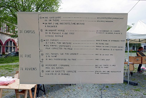 À partir d’outils graphiques générés par le collectif, nous avons proposé aux participants de créer une Gazette Collective en l’espace d’un après-midi.