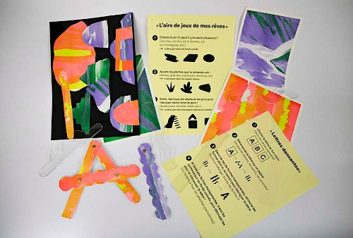 Aussi,ces ateliers ont permis une typographie ludique et des formes graphiques pour un journal d’école maternelle : plus de 36 lettres originales ont été fabriquées ; 238 formes graphiques découpées et assemblées et 34 paysages-collages réalisées.