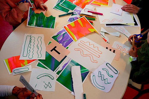 Notre collectif Ne Rougissez Pas! est intervenu auprès de 5 classes pour accompagner les ateliers de créations typographiques. Ces ateliers ont été aussi livrés en kit, de façon à ce que les classes n’ayant pas participé aux ateliers puissent aussi le répéter ultérieurement, accompagnées de leurs enseignant.es.