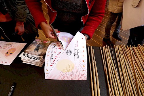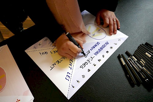 Atelier de création d’un drapeau-slogan.