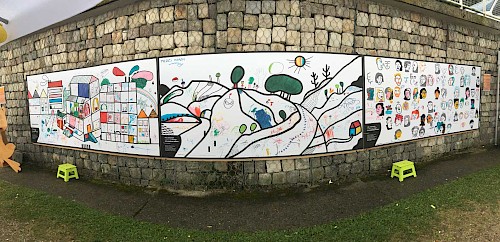 Dans le cadre de l'événement “Ô Berges d’été” à Massy, notre collectif est intervenu lors du premier week-end d’ouverture pour proposer un atelier créatif autour d’une grande fresque participative de 3 panneaux (ville, paysage et portraits).