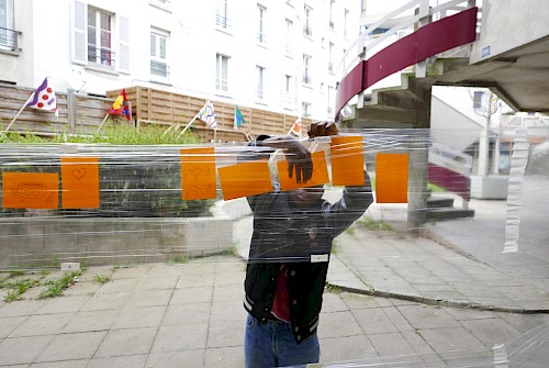 À l’occasion des Journées des portes ouvertes des Ateliers d’artistes de 2015, Le collectif Ne Rougissez Pas ! a investi l’espace public de la cité des Longs Sillons.