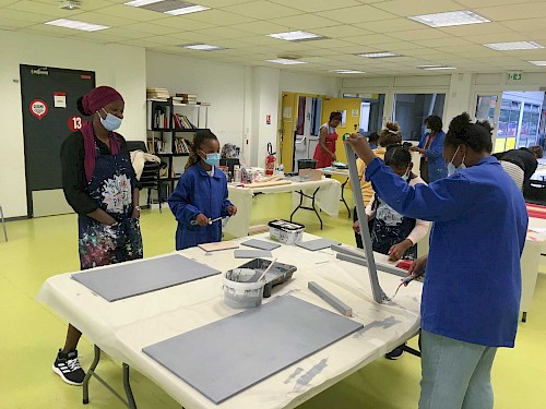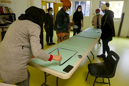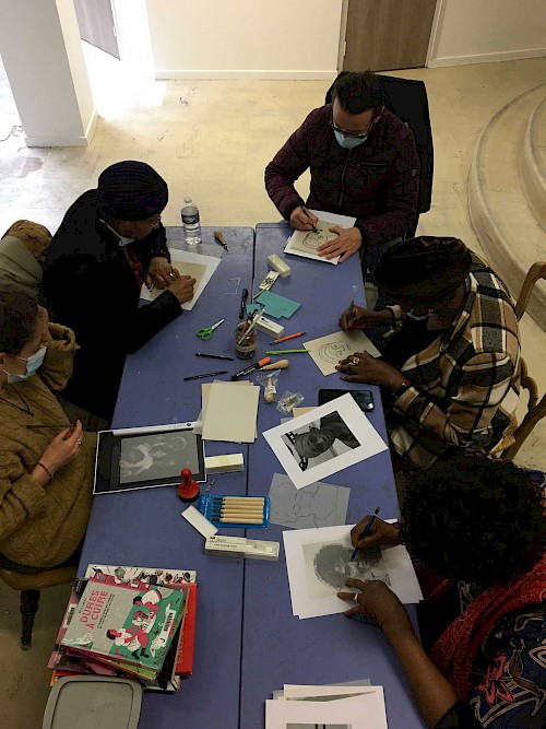 Temporalité et nombres d’ateliers : 7 ateliers créatifs de 2 heures et 3 rencontres de professionnel·les.