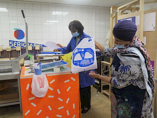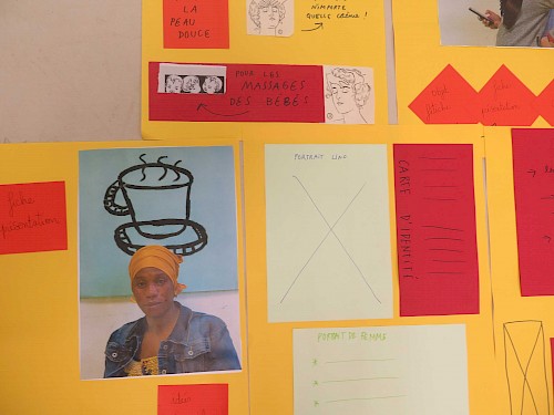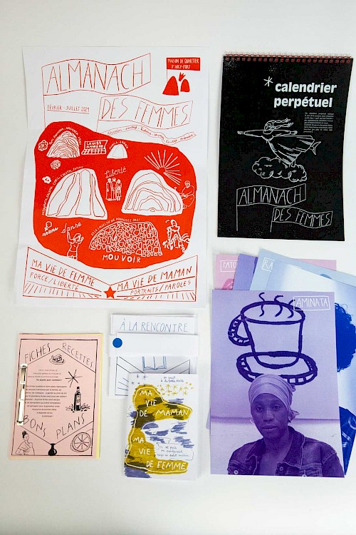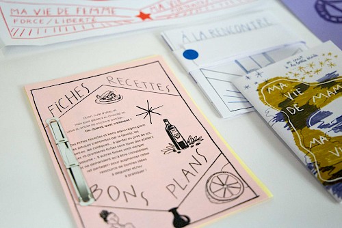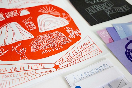 Suite à un partenariat privilégié avec la Maison de Quartier (MDQ) d’Ivry-Port, nous avons co écrit avec eux un projet dans lequel il était question de réaliser un objet d'édition de A à Z (contenu et forme) avec un groupe de femmes de la MDQ. Aussi, est né le projet Volume qui reposait sur la co-création d'un kit éditorial sur la thématique “Portraits des femmes” et d'un “chariot colporteur". Ces créations étaient nourries en parallèle des rencontres avec des professionnel·les du livre pour comprendre le processus de la chaîne du livre.