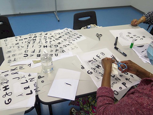 Au total, nous avons mené 6 ateliers de création : d’écriture, d’interviews et de créations graphiques (linogravure, typographie, illustration, mise en page…); 3 rencontres avec des professionnel·les du livre (une illustratrice, une médiathèque et un centre archives), 3 jours de chantier de construction pour le “chariot colporteur” et 1 restitution festive à la Librairie Envie de Lire réunissant tous les partenaires / participant·es du projet.
