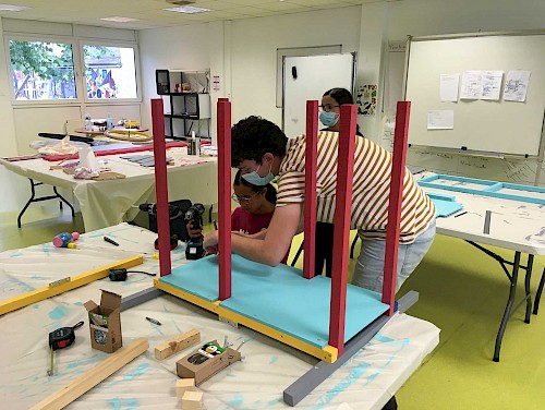 Temporalité et nombres d’ateliers : 7 ateliers créatifs de 2 heures et 3 rencontres de professionnel·les.