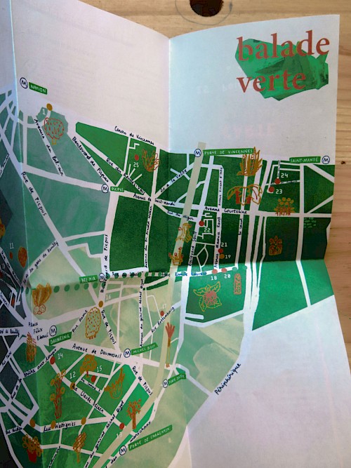 Face à la nécessité d’identifier spatialement les jardins et points de végétalisation dans le 12e mais également de définir une identité graphique claire, nous avons mené une recherche graphique sur le territoire afin d’identifier visuellement les différents « points verts » clés par et pour les habitants. Nous avons pris en charge la création d’une identité graphique et d’une cartographie sensible du territoire afin d’y identifier les éléments nouveaux et attractifs.
