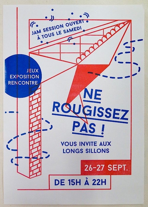 Impression risographie chez Après Midi Lab sur papier Munchen/ Environ : 300 affiches A3 et 400 cartons